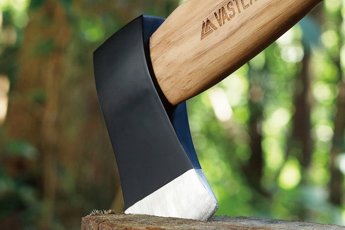 >> 刃先の角度とヘッドの構造を追求したヴァストランドの手斧なら薪が面白いくらいサクサク割れる!