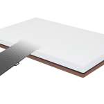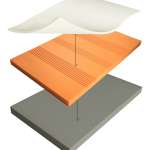 ▲1層目は高反発素材スフエアー、2層目は本来多少沈んでほしい箇所に溝加工を施し、3層目は体やマットレス全体を支える硬めのウレタンを採用