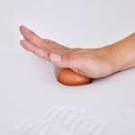 ▲体全体を面で支えて圧力を分散。その優れた圧力分散性は、生卵を押しつぶしても割れないほど。柔らかいのに沈み込みすぎないため、腰や肩にも優しい