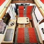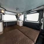 柔らかな曲線デザインの家具や間接照明によってリラックスできる時間を提供する。またテイジン製のフルフラットマットを装備したことで、快適な睡眠時間も確保できる。このマットを収納すると4名乗車も可能と使い勝手の高さも見逃せない。