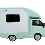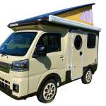軽トラックをベースにしながら、5名乗車・4名就寝可能となっている本格ミニキャブコン。ナチュラルな雰囲気の内装にシンクや有孔ボードを採用し、実用性も高めている。メイド・イン・ジャパンの高品質が特徴で、特に断熱性能が高く室内の快適性に優れている。