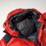 ▲保温性を高めるため、首元とフロントフラップにもダウンを封入
