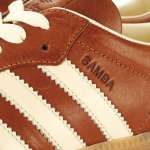 ▲レザーに押されたSAMBAのロゴや同じくレザー製のスリーストライプス、ステッチに至るまで丁寧なディティールが所有感をくすぐる