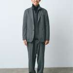 ▲「コンフォート2Bジャケット」(6990円)、「フリースジャケット」(2990円)、「カシミヤタートルネックセーター」(9990円)、「タックワイドパンツ/ヘリンボーン」(3990円)/以上すべてユニクロ、その他スタイリスト私物