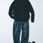「トップスの重ね着で迷ったら、同色同素材を選ぶと間違いありません。ニットならカーディガンを合わせると、インナーの選択肢も広がって一層良いでしょう。さらに、デニムパンツと組み合わせることでカジュアルさを保ちつつ、シックな雰囲気が漂うため大人世代に最適。足元は黒色のシューズを合わせて、全体のバランスを整えれば完成です! ぜひ試してみてください」(井上さん)