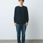 初級編から一転、大人らしいニットアンサンブルでまとめた中級編。汎用性抜群のネイビーカーディガンに、同素材・同色のクルーネックニットを重ね、ボトムスには程よく色落ちしたデニムパンツを合わせている。