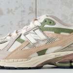 2009年当時のランニングシューズに、近年のトレンドを凝縮し再構築。ひと目見て機能的だと分かる複雑なパーツ使いに、2000年代のムードを感じる。「1906」はシンセティックレザーを用いることが多いが、天然レザーをアクセントに採用。異素材をミックスしたあしらいに「1906N」ならではの遊び心を感じる。