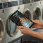 ▲8型のHDディスプレイはコンテンツ視聴に最適。バッテリー持ちは最大13時間で、外出先での使用にも耐える