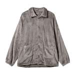 トップスは羽織ものとして使えるサイズ感も嬉しいトコロ。袖口はきゅっと絞れるうえ、襟付き&首元までボタンが閉められて暖かさをキープ。大きめポケットは、スマホなどを入れるのにも便利。