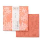 ▲58cm四方の大判サイズながら、無駄がなく使いやすい。花や緑を思わせる染めも美しく、キッチンに温かな彩りを添える