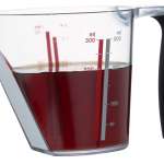 カップの内側にも目盛りがあるので、上から見ても計量可能。どんな色の調味料が入っても量りやすいよう、側面には赤とシルバー2色の目盛りが付いている。開口部が広くて洗いやすく、電子レンジ・食洗機対応なのも便利。