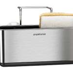 シンクのヘリにかけるワイヤーと、背面についた4つの吸盤でしっかりと固定。スリムなホルダーでシンクを広々と使える。底面の穴が大きいのでスポンジが乾きやすいのも嬉しい。