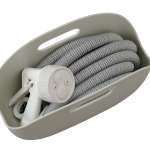 長いホースを巻き取る必要がなく、ラクに使える画期的商品! ケースは蛇口に引っ掛けられて、底に穴があるので水が溜まることもなし(吉川さん)