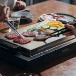 高い蓄熱性を持つプレートを搭載しています。焼いた料理はもちろん、これで焼く姿も目で楽しめるはずです!(藤井さん)