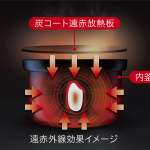 ▲本炭釜と炭コートの内ぶたから包むように遠赤外線を放射。お米への吸水を促進させることで、うまみや甘さを引きだす