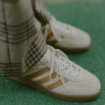 ▲素材は天然皮革と合成皮革ゴム底。3本のストライプが施されたアイコニックなデザインは時代を超えて愛され続ける