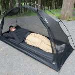 ▲フロアは成人男性が寝転ぶのに十分なサイズ感。初めてのソロテントにオススメだ
