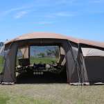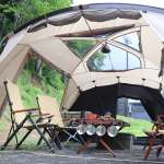 オールシーズン使えるAOD自慢のテント。サイド窓はもちろん天井窓もメッシュにできるので通気性と開放感がすごいんです!(古澤さん)