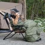 ▲ボトムには巻き上げ可能なスカートを装備。秋冬キャンプでは冷気の侵入を防いでくれる