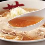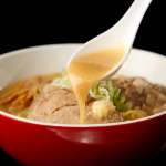 ▲岩手県産の高級丸鶏を長時間煮込み、アゴの焼き干し、トビウオの天下干しなどを合わせた深みのあるスープ