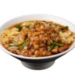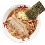 衝撃の新ジャンル“スタミナ満点ソバ(スタ満)”の元祖。背脂の甘みと豚肉の旨みに、ニンニクの香りと醤油の濃厚さが加わったスープのパンチ力はまさにヘビー級。コシの強い自家製極太麺とのバランスも見事だ。