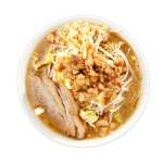 二郎インスパイア系の中でもトップレベルと言われている同店。それもそのはず、店主は二郎出身で、約2年かけて今の味にたどり着いたという。濃厚ながら角のないまろやかな口当たりのスープとコシの強い自家製極太麺に脱帽!