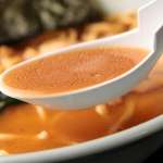 ▲ニンニクと生姜の香りが引き立つ濃厚スープ。札幌の名門「森住製麺」の縮れたまご麺との相性も抜群だ