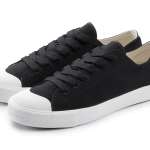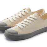 ハトメやサイドの通気口に使用していた金属パーツは廃止し、よりプレーンな印象に仕上げています。リーズナブルでリピーターも多いスニーカーです(関根さん)