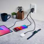 USB Type-Cを3ポート、Aを1ポートの合計4ポート搭載のGaN急速充電器。最大67Wまで対応するため、iPhoneなどのスマホから、MacBookをはじめPCの充電もOKと、卵一個分コンパクトな筐体&約120gと軽量ながら頼りになる1台です。“NovaIntelligence”で電力を最適に振り分けてくれ、4台接続時も効率よく充電が可能安全保護機能“NovaSafety2.0”も搭載し、高負荷時に自動で電力調整も行うので安心して使えます。筐体自体にはシボ加工を施し、傷がつきにくいので旅にもぴったり。