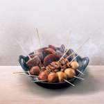 ▲おでん種は、大根、豚もつ、玉子、里芋、こんにゃく、厚揚げの6種類。すべて国産のものを使用している