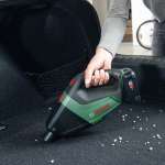 コンパクトながらボッシュらしい強力な吸引力で車内清掃に最適。同ブランドの電動工具と同じく滑りにくいグリップを採用しています