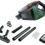 ボッシュ製品共通の18Vバッテリーで稼働するので、ワイヤレスで車内でも使いやすい。サイズは384×211×149mmとコンパクトで、重量も約1.3kgに抑えられている。布地に適したブラシノズルも付属してシートにも使いやすい。