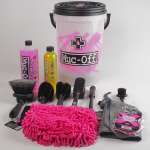 車体用とチェーン用の洗剤、ドライブトレインやホイールまで洗える7種類のブラシ、マイクロファイバー製のミットなど自転車洗浄に必要な道具がワンセットに。バケツには腰掛けることが可能なので、メンテナンスチェアとしても使える。