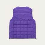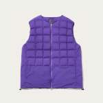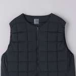 こちらは、ダウンの偏りを回避すべく小さなダウンパックを採用しているため防寒対策としても重宝します。スムーズなスウィングを促すべく負荷のかかる部分にストレッチ性を加え、さらにオリジナルのキルトワークも機動性を考慮してのもの。とはいえ、ノーカラーや左胸下に刺繍を施すなどさりげないデザイン性も光ります。