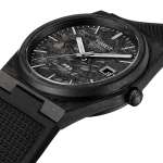 ▲キャリバー11 1/2''' メカニカル 自動巻(手巻つき)、フォージドカーボン、ケース径40mm、厚さ11.23mm、10気圧防水、パワーリザーブ約80時間(最大巻上時)