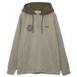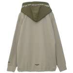 身頃はダンボールニットと呼ばれるジャージー素材、フード部はナイロンで構成された異素材ミックスフーディです。そのダンボールニットは、ゴム編みを二重にした生地の中でもトップクラスの厚みを誇り、ストレッチ糸による優れたキックバック性と相まって快適なプレーを約束。同系色ながらトーンの異なる配色にしたことで程良く個性も演出してくれます。
