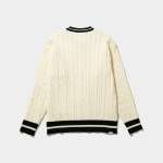 ボリューミーな生地厚のこちらは、まるでプレッピースタイルのアイコニックなニットを思わせるような凹凸感のある太畝の編み柄が特徴です。左胸にあしらわれたブロイダリーワッペンや、スポーティさが香るネイビーラインもポイント。軽量かつ吸水速乾に優れるポリエステル糸で仕上げられているため、プレーに支障をきたすこともありません。