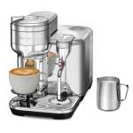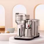 遮光性・密封性の高いアルミニウム製のカプセルを採用した「ヴァーチュオ」シリーズのコーヒーメーカー。スチームパイプを搭載しており、ワンタッチで泡立ちミルクを温めて、ラテアートが楽しめるのが特徴だ。