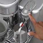 ▲本体にミルクフォーマーを搭載しており、ボタンを押すだけでジャグを回転させてミルクの泡立てができる