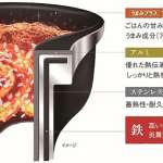 ▲内釜は、発熱効率と蓄熱性が高い鉄素材を、熱伝導性の高いアルミと耐久性の高いステンレスで挟み込んだ多層構造