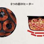▲底IHヒーターを6つ搭載し、対角線にある2つを順に集中加熱することで、縦にも横にも激しい対流を生み出す
