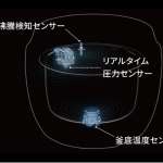 ▲米の状態を3つのセンサーが見極め、約9600通りのプログラムから最適に炊き上げる「ビストロ匠技AI」搭載