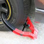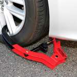 実は筆者も使っているのですが、外すのを忘れて走り出そうとしても本当に動きません。忘れにくいように、運転席側の前輪に装着しておくのがおすすめです。幅300mm以下のタイヤに装着可能で、バイクにも使えて価格は1万2000円前後です。