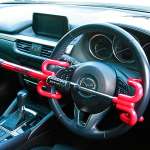 デジタルな手口で解錠されてしまったとしても、物理的にハンドルを切れなくして走行できないようにするのがハンドルロックです。アナログな手法ですが、効果は抜群。いかにデジタル技術が進化しても、ハンドルを動かせなければ走れませんからね。