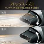 ▲吹き出し口はフレックスノズル仕様。シーンに合わせてワンタッチで風の幅と風圧を、拡散と集中に切替可能だ