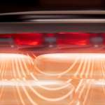 ▲ハーフミラーコートでスタイリッシュに仕上げられた新型ディスプレイ。モード状態がグラフィカルに表示される