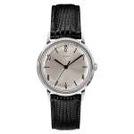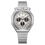 「ツノクロノ」の愛称で親しまれたシチズンの名作が現代仕様にアップデートされて復刻。エッジの効いた形状と「ツノ」のようなプッシュボタンが目を引くデザインとなっている。ケース径は38mm径と扱いやすく、1970年代のようなクラシカルな金属文字板もユニーク。