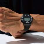 ▲G-SHOCK初号機のスクエアデザインを踏襲している。フィルムソーラーセルやSTN-LCD(液晶)を用いており視認性も良好