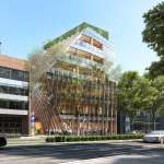 ▲パサージュ(路地)の壁面は明治神宮から連続した地層をイメージ。施設の随所にグリーンが添えられ、居心地の空間になっている