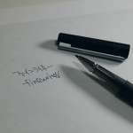 帰宅して早速試してみる。良い、けど想像していたよりだいぶ細かった。そうかぁ、ちょっと残念。たまに思い出したように使ってみる程度だった。のだが、ここ最近、日課であるモーニングノートはほぼ毎回これ。インクの持ちも非常に良い。使うことによりペン先が自分好みに「育ち」、達筆ではない俺が好きな文字を書ける1本になっていた。やはりトメ、ハネ、ハライができることを謳うペンに間違いはない。まだまだ未開拓、高級サインペンの世界。拡がってくれ。全世界の俺、大歓喜確定だ。